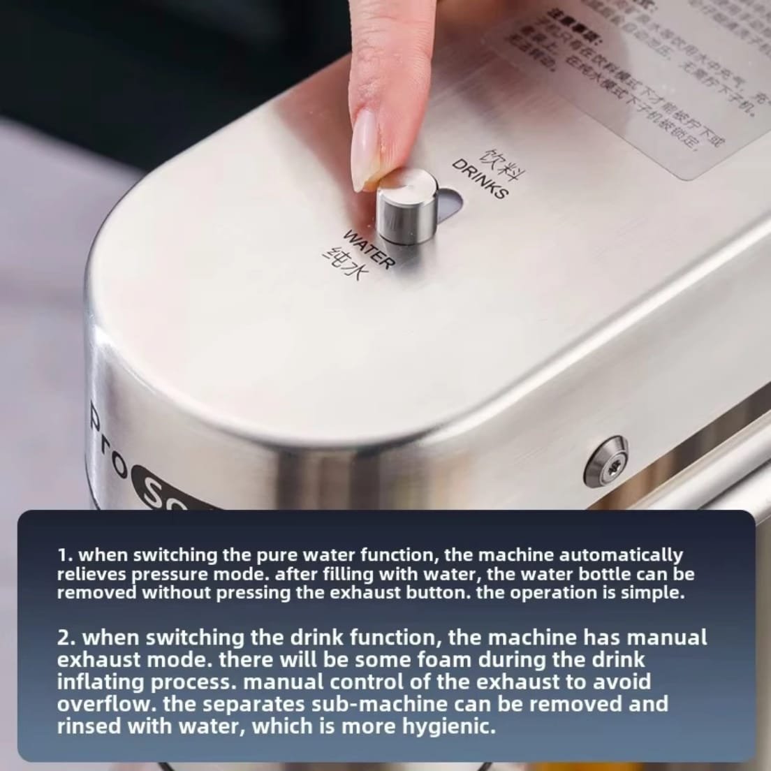 تقنية متقدمة لإذابة ثاني أكسيد الكربون: بفضل نظام التحكم المتخصص الموجود في الجهاز الفرعي، تضمن آلة المياه الغازية هذه إذابة ثاني أكسيد الكربون بالكامل في مشروباتك، مما يوفر فقاعات أغنى وأطول أمداً مقارنة بصانعات الصودا التقليدية.