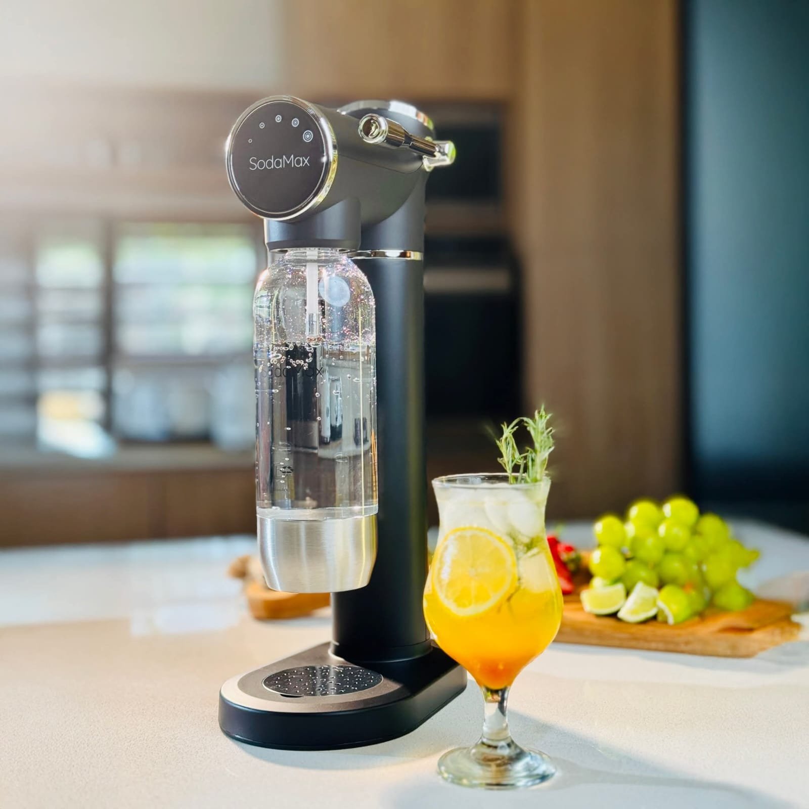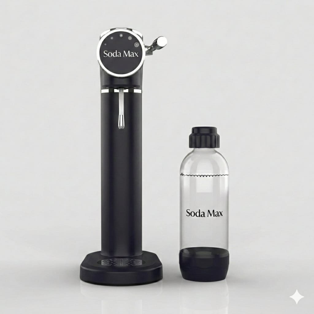 نقدم لكم جهاز صنع المياه الغازية الفاخرة “صودا ماكس”، جهاز أنيق وعصري لتحضير المياه الغازية، مصمم لإضفاء لمسة جمالية على مطبخكم. يتميز بتصميمه الأنيق والنحيف، وهيكله البلاستيكي المتين ذي اللمسة