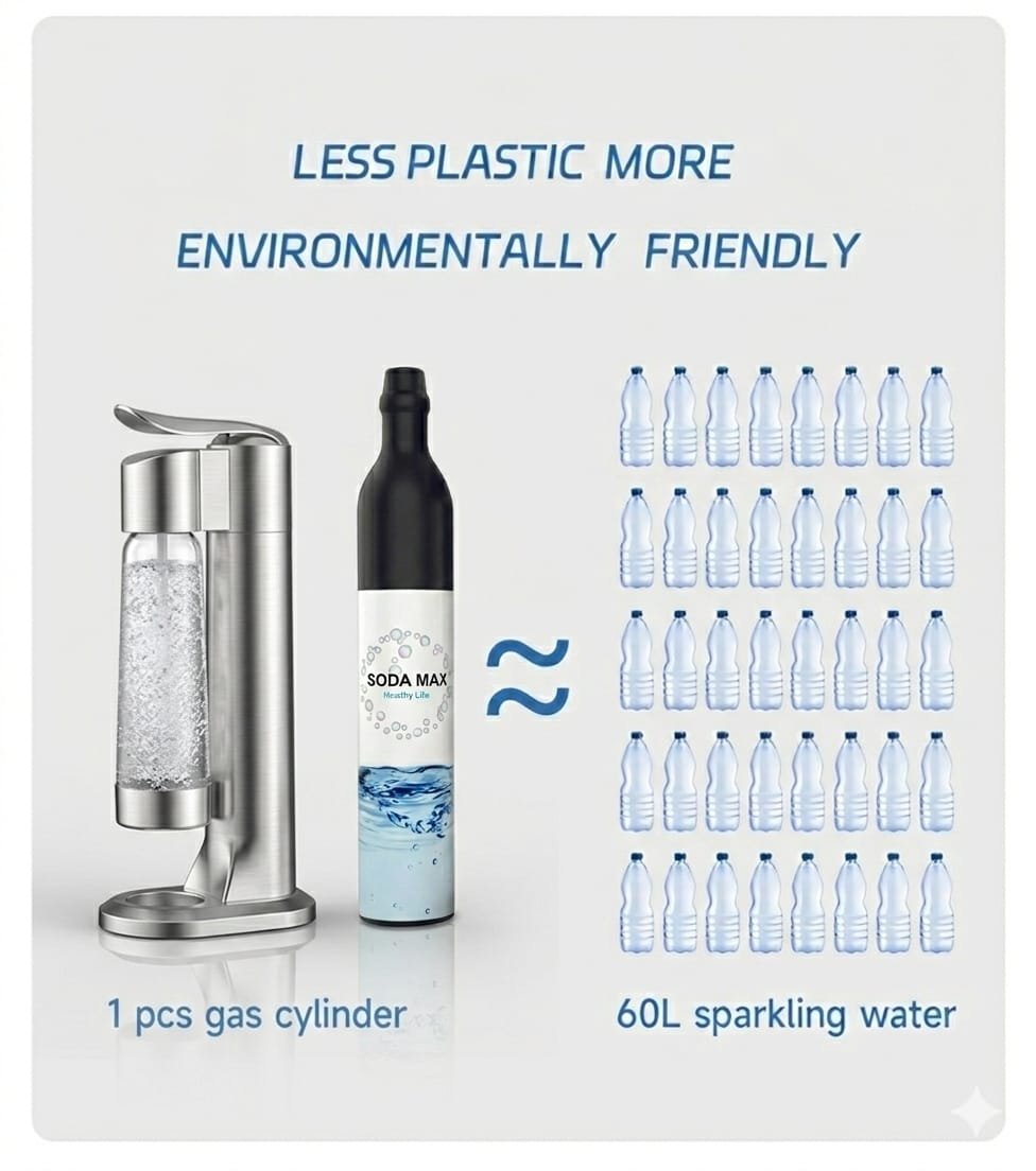 جهاز SodaMax، سهل الحمل والاستخدام، أنيق وفعّال، يتيح لك ابتكار تشكيلة واسعة من المشروبات الغازية، والسبريتز، والكوكتيلات الفوارة حسب الطلب. ودّع المشروبات التقليدية واستمتع بمستقبل مليء بالنكهات المنعشة مع SodaMax.